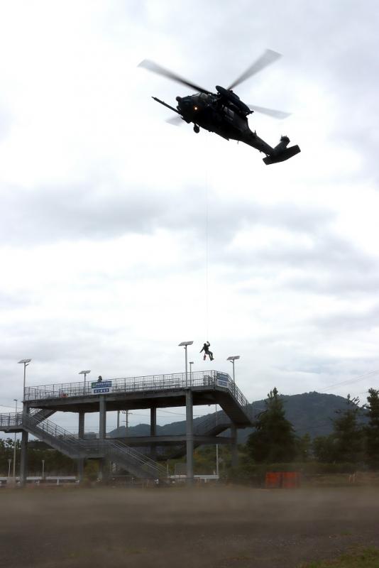 焼津市では、市内全域14会場に自衛隊・警察・消防などの災害対応機関が参加。倒壊家屋、土砂被害家屋からの救出・救助訓練や海底地形計測技術、最新技術による航路啓開訓練など地域の特性に合わせた対応を確認するとともに、各機関との連携強化を図りました。