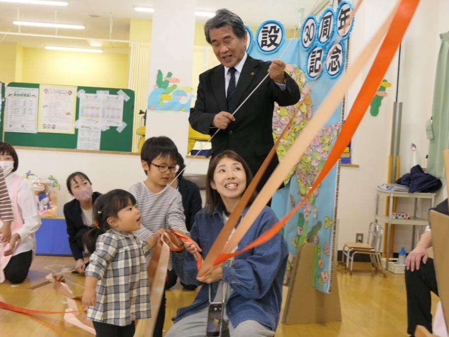中野市長は「開設30周年と30万人達成おめでとうございます。多くの方にご利用いただき、うれしく思います。子育ては、ご家庭はもちろん、地域でしていくものと考えています。市内には他にも支援センターがあるので、今後も皆さまにご利用ください」と語りました。