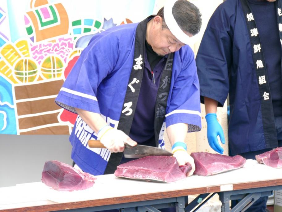 焼津市ホームページ ≫ まちかどフォトニュース ≫ バックナンバー ≫ 2025年の記事一覧 ≫ マグロ解体ショー「さかなのまち」焼津を体験