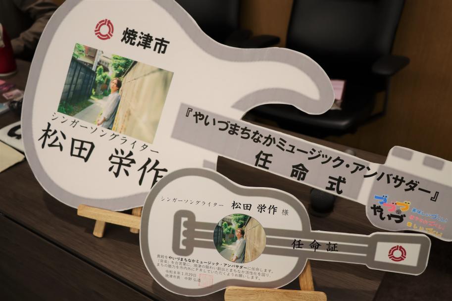 松田さんは「母の言葉をきっかけに、大切な焼津のために何かできないかとずっと話をしてきたが、まさかアンバサダーに任命していただけるとは思わなかった。母のために、家族のために、そして大好きな焼津のために音楽を通して精一杯頑張ります」と意気込みを語りました。