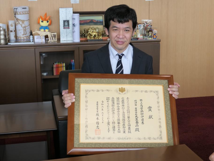 農林水産大臣賞を受賞し、焼津市長を表敬訪問した松本さん